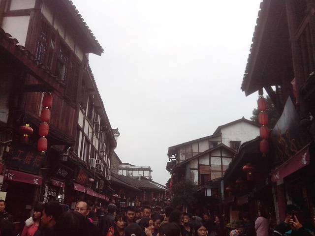 果然睡到中午啊 收拾一下退房 寄存行李然后下楼吃个现炒泡椒肉丝面 然后前往磁器口 磁器口人真是超多啊 走路都费劲啊 还有满街陈麻花 居然排了好长好长的队伍啊 天 有品尝的 我就尝一尝 还行