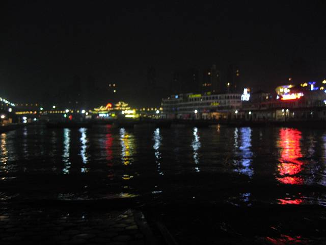 吃饱后在解放碑晃一晃直奔洪崖洞 不远 转几个弯就到了 还没黑天 沿着江边一直往朝天门走 在修路转了好多弯 爬好多阶梯 终于到了码头 好多游船停在岸边 又走了好久到了朝天门的观景台 这里是长江和嘉陵江的交汇处 天已经慢慢黑了 远处洪崖洞的灯光也都亮了起来 对岸的灯光很美 游船亮起灯光也更为壮观 我原路返回洪崖洞 夜景特别美丽 显得十分壮观 各层都是商铺 不想逛了 一心想着火锅