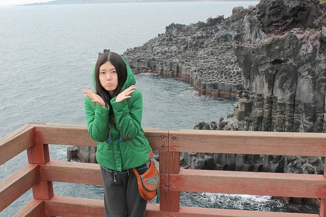 15:30 乘600路,到ICC站下车,车票2000韩元,向东走约三百米,看指示牌右转走到头至大浦海岸,参观柱状节理带,门票2000韩元