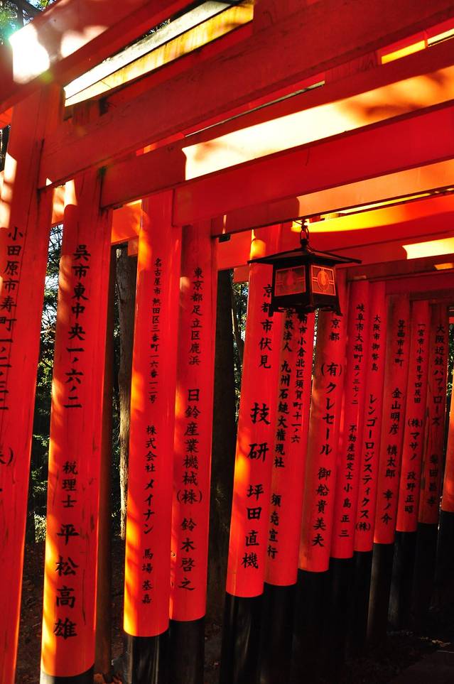 今天的伏见稻荷大寺、宇治、奈良都是JR搞定,就不用买公交一日券啦。从京都站做JR线,到稻荷站每人140日元。伏见稻荷大寺免费参观哦。千本鸟居,著名的红色经典,拍照是真的很美达,上面刻着募捐者的信息。