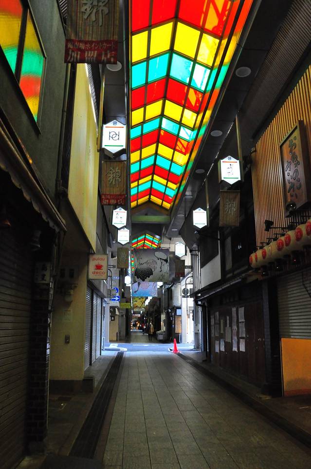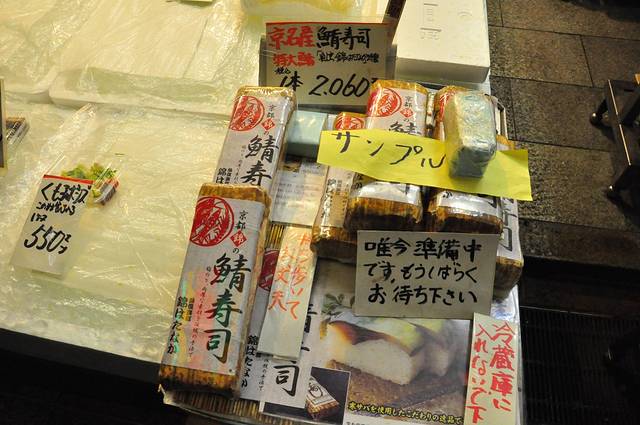 今天的行程先去看一眼锦市场,京都站打车共910日元,四个人平摊下来比公交便宜哦。到了,结果太早了没啥店开了。