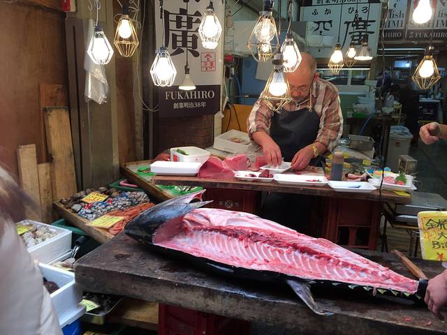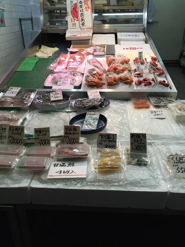 走去黑门市场去吃刺身河豚鱼啦,我们吃的这家听说之前很有人气,现在也就人气清淡了一点啦。叫渔一,四个人一顿吃了12400日元,相当于600-700人民币。