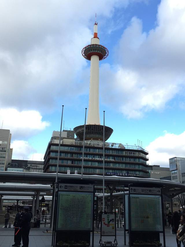 今天行程有点赶,我们逛完道顿堀后就出发去京都啦。大阪到京都每人580日元。京都站对面就是京都塔拉。