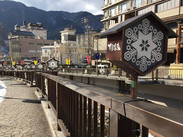 从高山到下吕,970日元每人。我们住的宾馆叫陆馆,离车站超近,住宿费好像是8000日元单间每晚,具体多少忘记了。下吕主要就是温泉啦,所谓天下三大温泉,其实是日本三大温泉之一。随处可见的温泉点,有人在街边泡脚的,还有在河边直接泡露天温泉的呢。住的旅店里也有温泉啦。