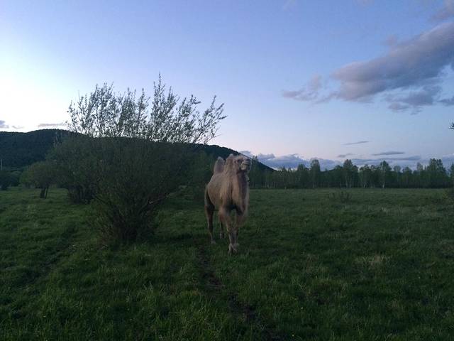 被路两旁的牛马群吸引,跑离马路下田,抓到一只大骆驼。神气的用大眼撇了我几下,砸吧着嘴就朝我走过了,吓得我赶紧看别处,(根本跑不快,草垛高高低低)