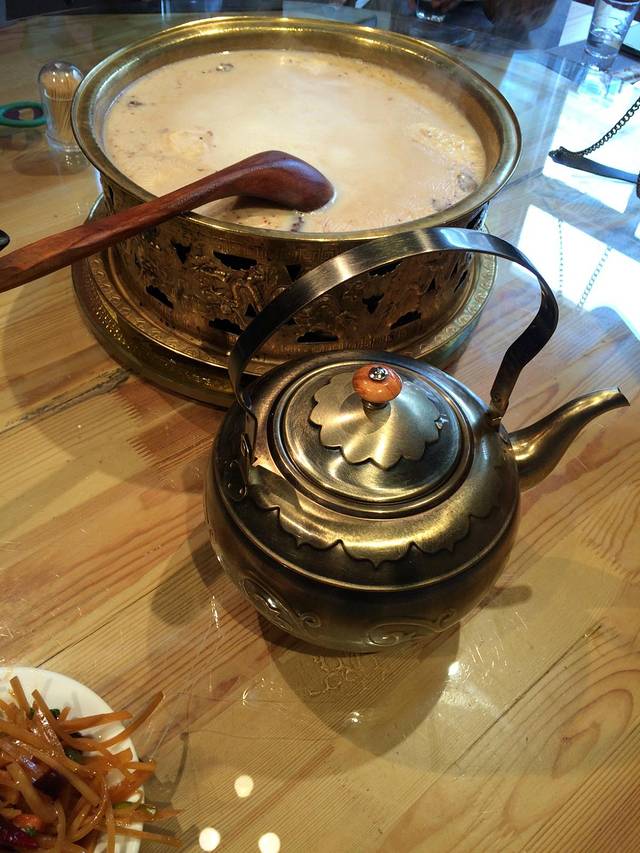 落地第一口:阿妈奶茶家的锅茶——锅底是芝麻、炒米、牛肉干和奶酪片子,加奶一冲,奶香四溢,热气暖身,一碗下肚,整个人都舒活起来了。