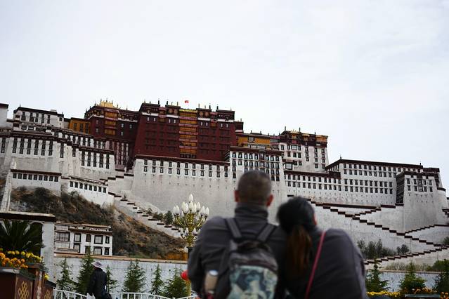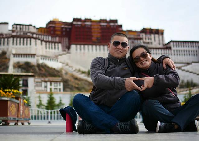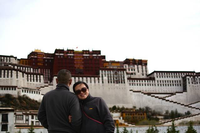 我们四个人是在网上订的布达拉宫的票,不过进去的时间不一样,我和哥哥(上面那对夫妻中的男人)先进去,哎,两个大老爷们,还能干吗,只能自己玩自己的,先来上几张布达拉宫的图