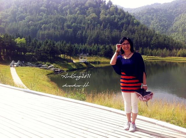第二天早起收拾好一路驱车前往天书峡,半路那个穿裙纸的蓝孩纸肚子痛!所以我们半路歇了一下~然后直奔天书峡。到了售票中心买了票就可以直接走进去了!天书峡现在只开发了一半!所以前半段景色比较好~也有玻璃道~就在湖上面~水特别清澈,蓝绿色可以见底!后面因为没开发完所以没觉得有什么~走到上面有一个乱石滩~到这个地方基本就转完了~期待完全开发好的样子。
