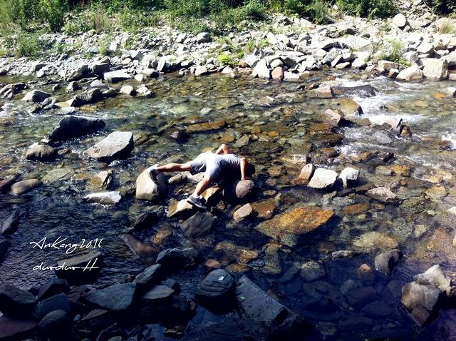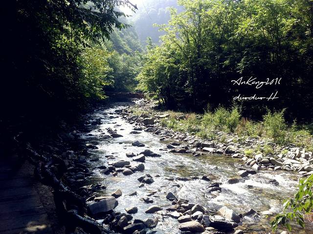 就在山下不远~整个村子都是农家乐~路上很干净!路修的挺好都是水泥路可以开车直接进村!村子走十分钟就有一条河!我弟想游泳!所以我们去河边啦~玩到傍晚,回去人家就把饭做好啦。吃完洗澡,和农家聊天~他们说不远的平利县就有一个天书峡,也是才修的,景色很秀丽~一定要去看看呀~我们五人一笑~走吧~