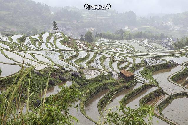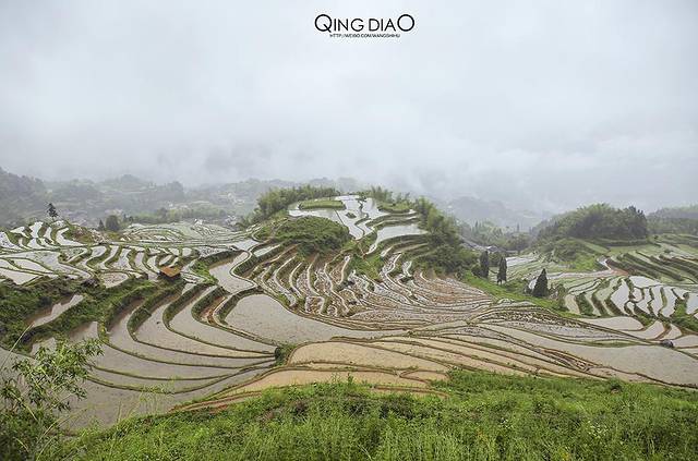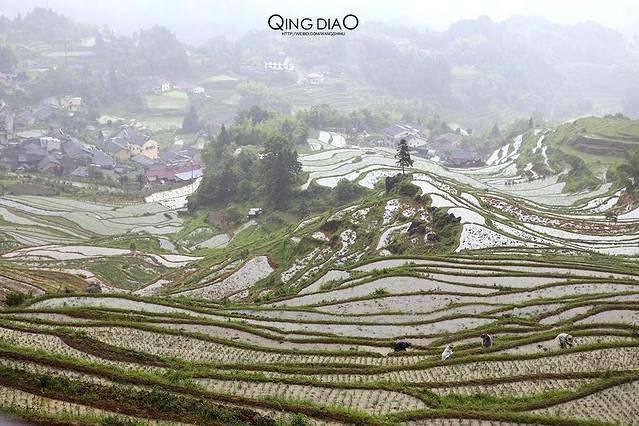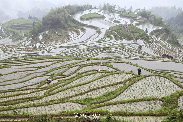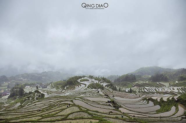 正在插秧的梯田是非常适合观赏的,而且也适合摄影,遇到好天气配上梯田里水的倒影一定很漂亮。