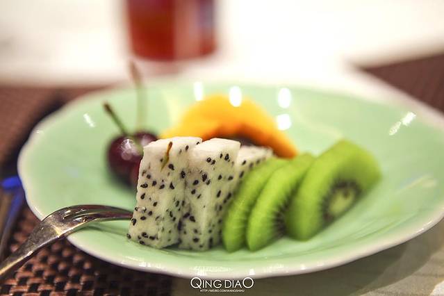 因为酒店周边没有什么吃的,只能在酒店吃饭,所以酒店一般在你没有到达时会提前打电话问需不需要预订中晚餐。这是餐前水果。