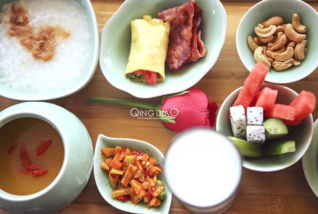 早上醒来吃上美味的早餐感觉一天又有活力了,酒店服务很到位,早餐都是送到房间来的,时间由你决定,美妙的早晨在房间的阳台上吃上这样的早餐是种享受。