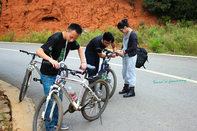 我们3个依然呼儿嘿哟的骑一段路,推一段路