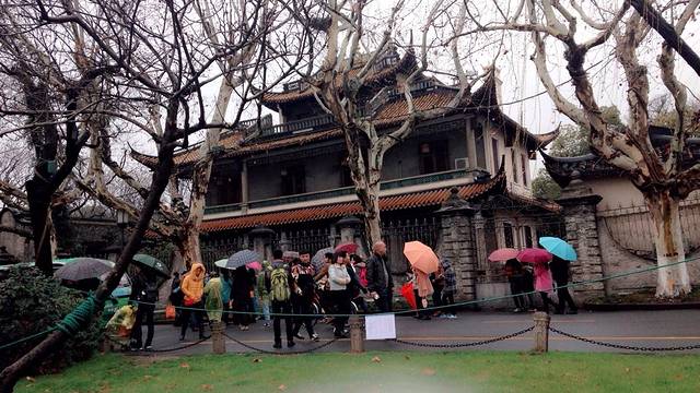 西溪湿地公园分水路和陆路的玩法,建议先水路再陆路,从西门进东门出,这是老爹排队买船票,我溜到梅花林照的相