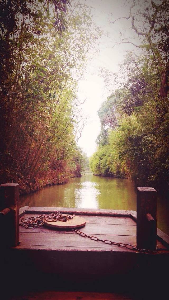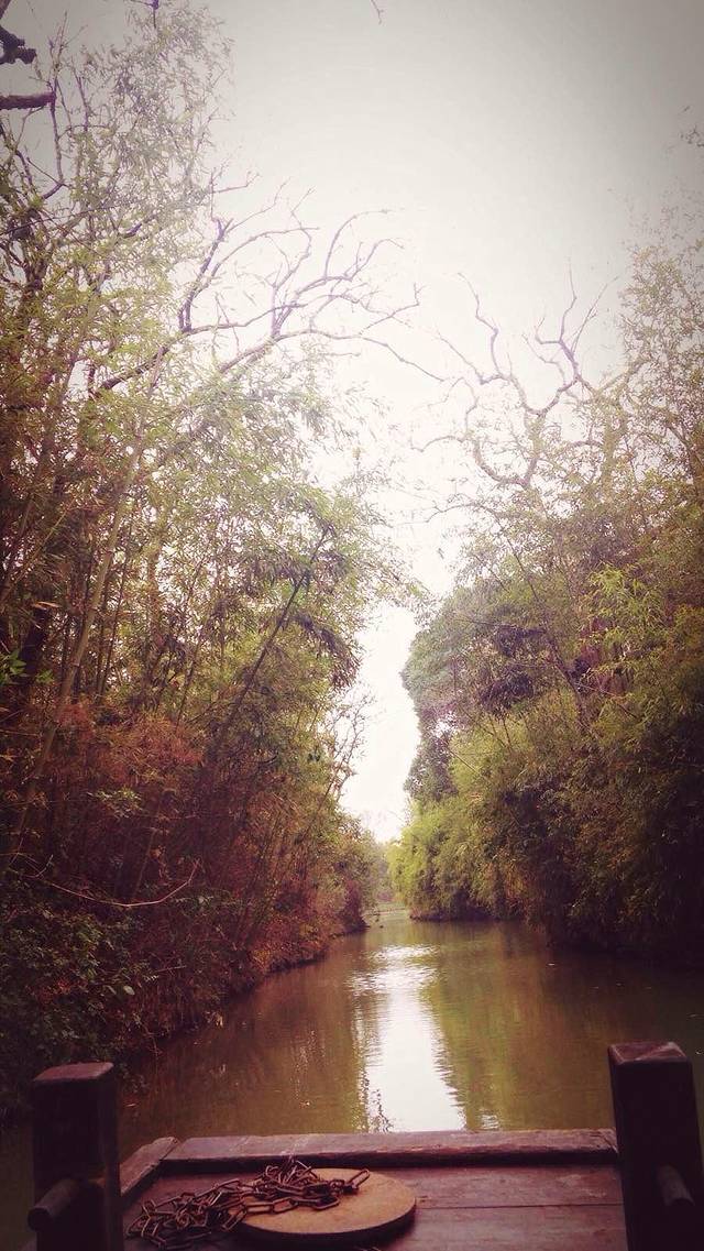 水路也有两种玩法,一种是电瓶船60元1人,一船坐30人大概,但是排队的人好多好多。另一个就是这种摇橹船了,100元包一条船,排队的人不多而且可以走的很深,所以我们选的是这个摇橹船~~