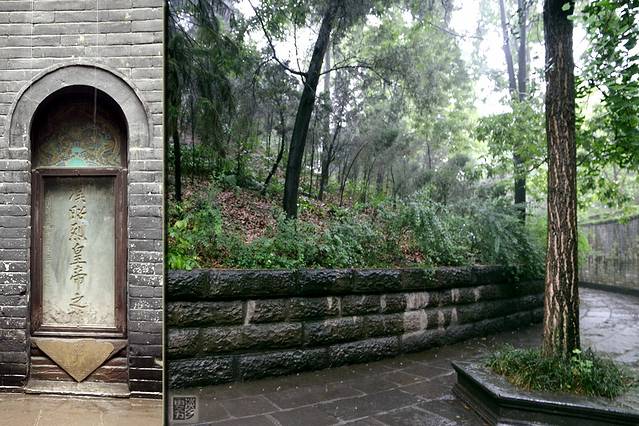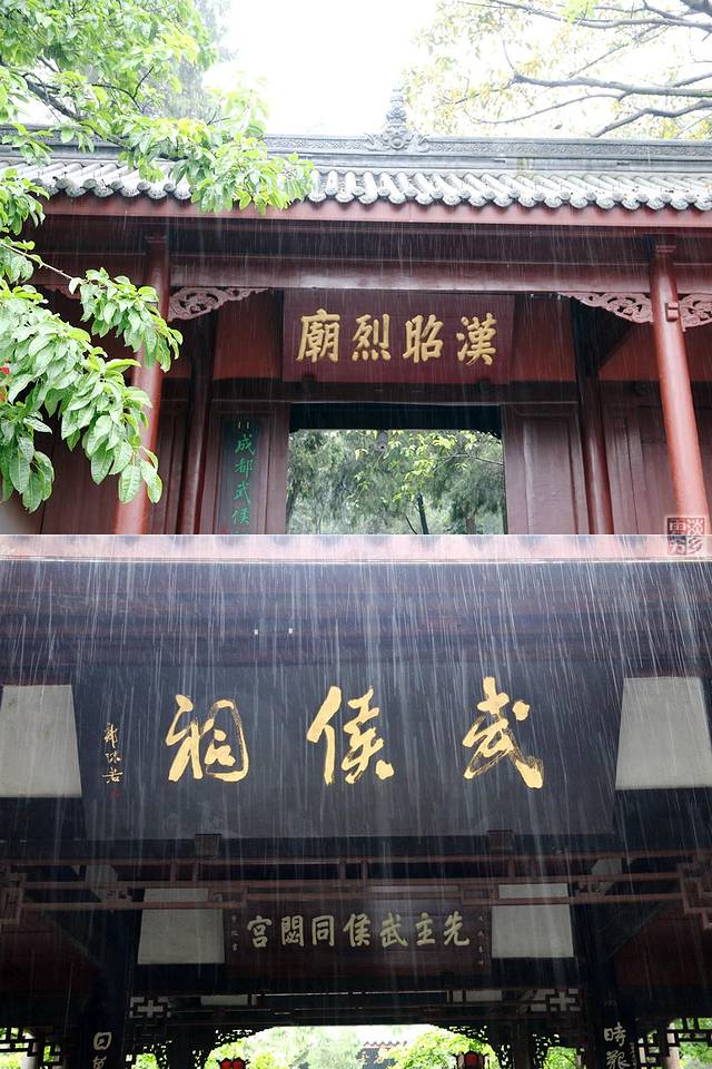 比起上午去的草堂,武侯祠的看点要丰富的多。有趣的是,这里本该只是刘家的陵墓与祠堂,连大门的牌匾也清清楚楚的写的“汉昭烈庙”,但架不住诸葛丞相的声望高啊,昭烈庙的香火一直不如另建在别处的武侯祠,于是到了明代干脆把两座祠堂合二为一了,清代时诸葛亮更是反客为主成了这里的主角,群众口中一直都只称其武侯祠。反倒是刘禅的塑像在明末被毁之后,没人愿意重建,导致刘备右边一直空着……