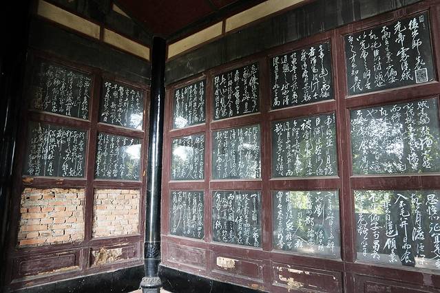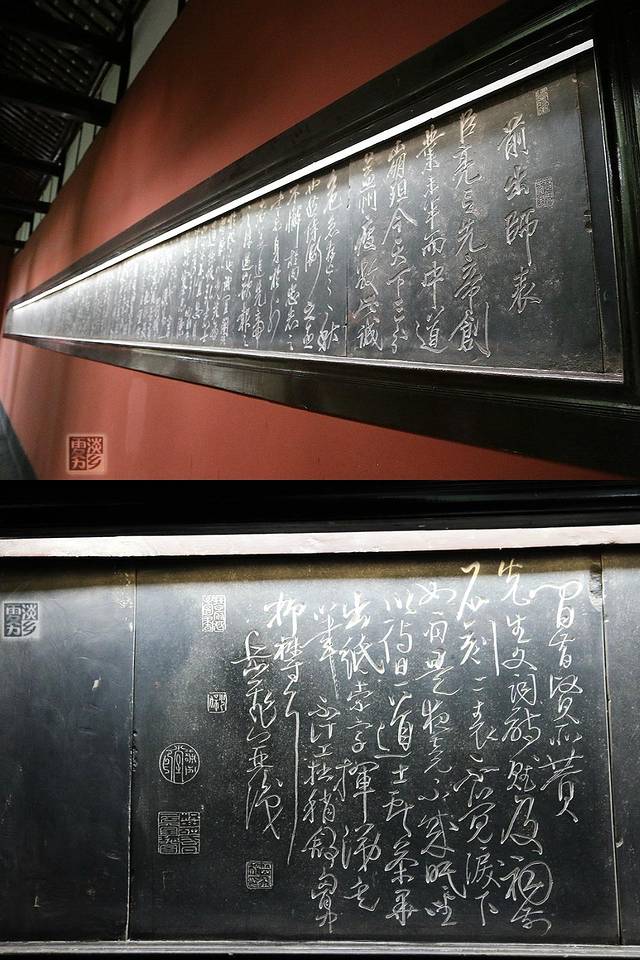 长廊的两侧还有岳飞所书的前后出师表,字如其人,遒劲有风骨。