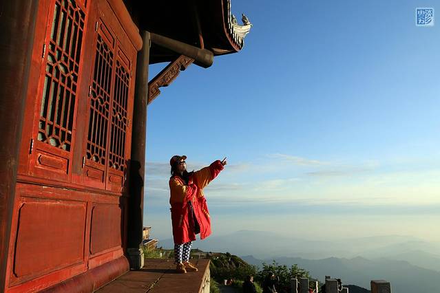tips:雷洞坪开始的沿途酒店与服务站都有大衣出租,30元/件·天(比起攻略里的20元又涨价了),住山顶的话可以提前一晚租好;从索道站到普贤像大约需要步行10分钟,从普贤像到最高处的观日平台又要5分钟。如果赶着看日出的话,可以从金顶大酒店对面的小路抄近道过去,直通崖边,能省下5分钟的脚程。