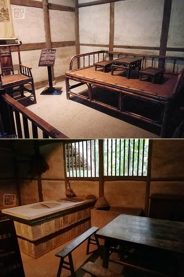 景区还仿建了一座新“茅屋”,但是做的太不走心,家具陈列都是明清风格……唐代哪来的靠椅板凳啊喂!