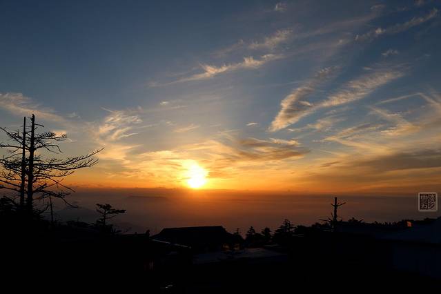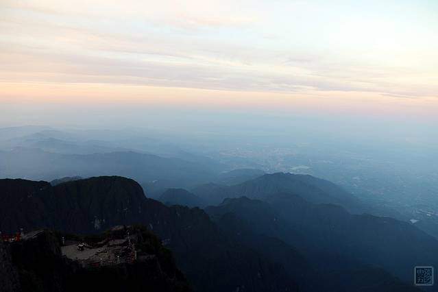 画面左下方的小平台是金刚嘴,在现有的大平台修成之前,那儿是古时候看日出的最佳地点。