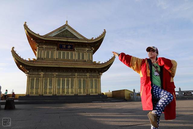 金顶的建筑在512时也受到了较大破坏(当然,比起青城山的几乎全军覆没还是要好的多),重修后干脆全都建成了金灿灿的土豪金,十分点题。