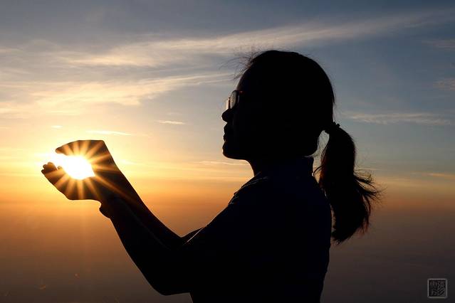 日出的景象美的震撼人心。站我隔壁的女孩子本来准备用手机录下全程视频,但拍到一半的时候就忍不住咕哝道:“太漂亮了,盯着手机太浪费了,我不拍了,我要用眼睛看!”