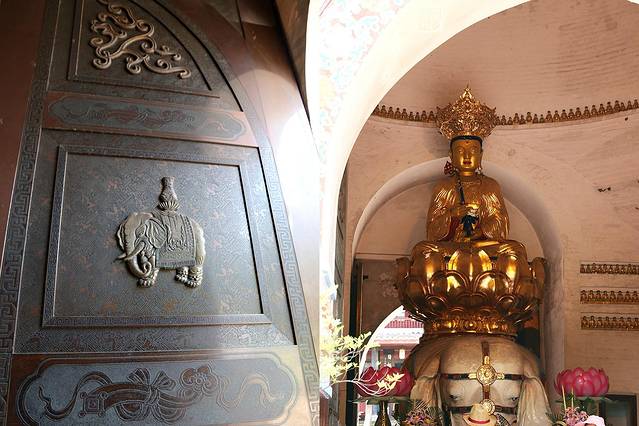 感觉报国寺的看点并不如万年寺,但此处供奉的佛像确实很美,精致优雅,宝相庄严,颇具艺术水准。(象象你的眼神为何如此狡黠?!)