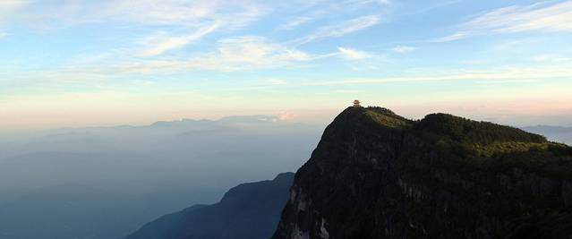 真正走到金顶的那一刻,瞬间觉得所有的花销与辛苦都是值得的!中国名山虽多,但海拔三千以上且山顶如此开阔者,峨眉可称翘楚。东侧的舍身崖壁立千仞,绵延数里,气势万千。晴朗时可俯瞰群山,远眺云海,坐看日出日落。