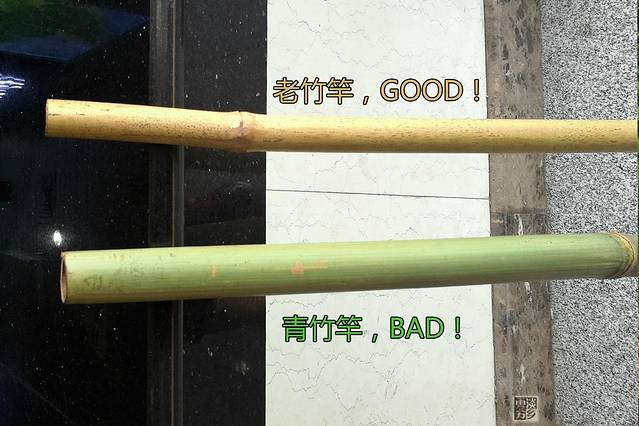 不过,普通竹竿大多是新竹,真心中看不中用:茎粗壁薄、不结实;含水量高、手感笨重,用到第二天还容易因为失水而开裂。建议大家选择老竹竿,细长轻便,结实耐用,表面些微的粗糙颗粒还能防滑,手感颇佳~ 第二天离开清音阁时,我就帮阿白重新买了根老竹竿!
