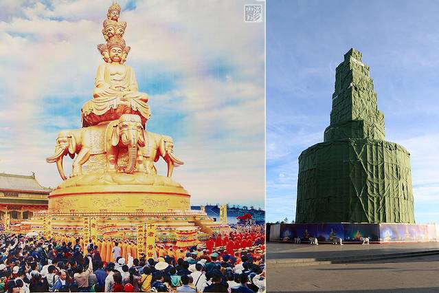 大概是佛教徒阿白昨天吐槽太多,造了自黑的口业,所以6号一早开始我们的运气就有点儿霉……打车定位出错耽搁了半小时,乐山之行也磕磕绊绊被小坑了一把,傍晚赶到峨眉山时更发现期待已久的金顶普贤像他居然在维!修!中!不!开!放!