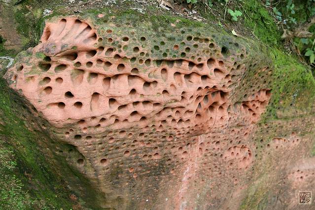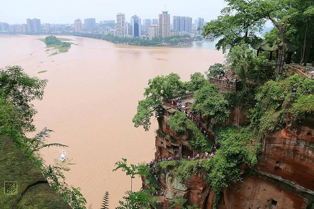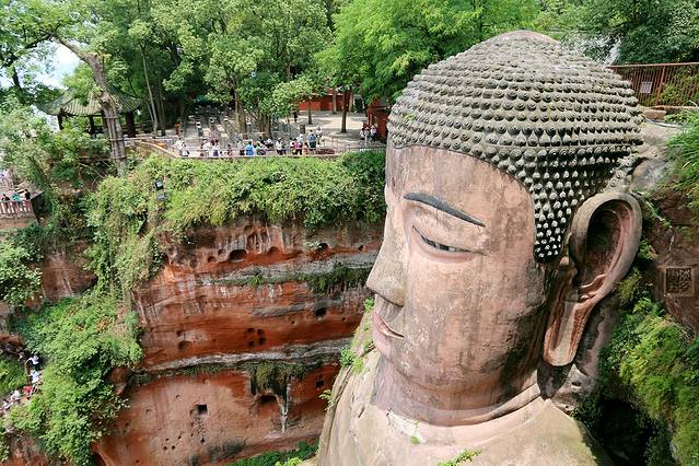在山顶看佛头,大佛身体内部有一套精妙的排水系统,耳朵也是排水孔之一。