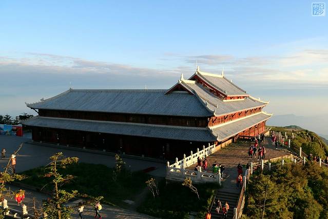 镜头拉近一点,在山巅处修建如此恢弘建筑,想必非常艰难(当然,金顶的土豪金们更恢弘……)。