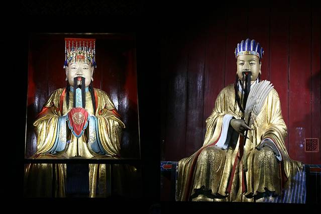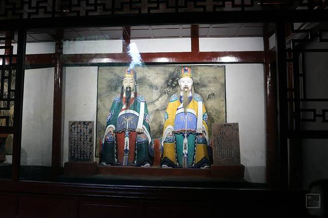 在刘备殿的两侧还陈列着关羽、张飞的小祠堂以及28名文武官员的塑像,文臣以庞统为首,武将以赵云、孙乾为首,赫赫有名的黄忠老将居然只排在第7,位居姜维之后。可见这个排名不光只看个人能力,更考虑了忠心程度、按资排辈、政治意义……