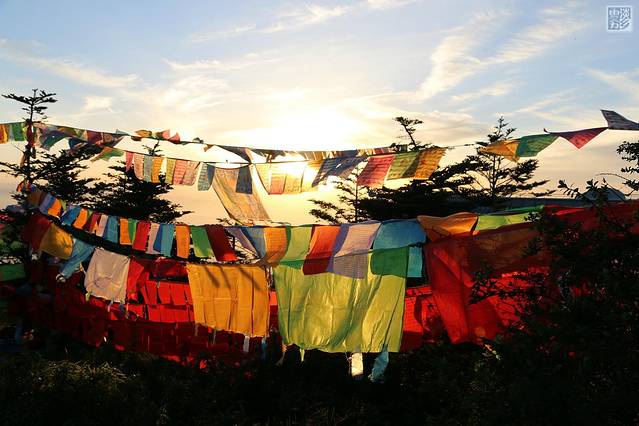 气象站边挂着许多貌似藏传佛教的经幡,虽然看不懂,但感觉还挺美的。