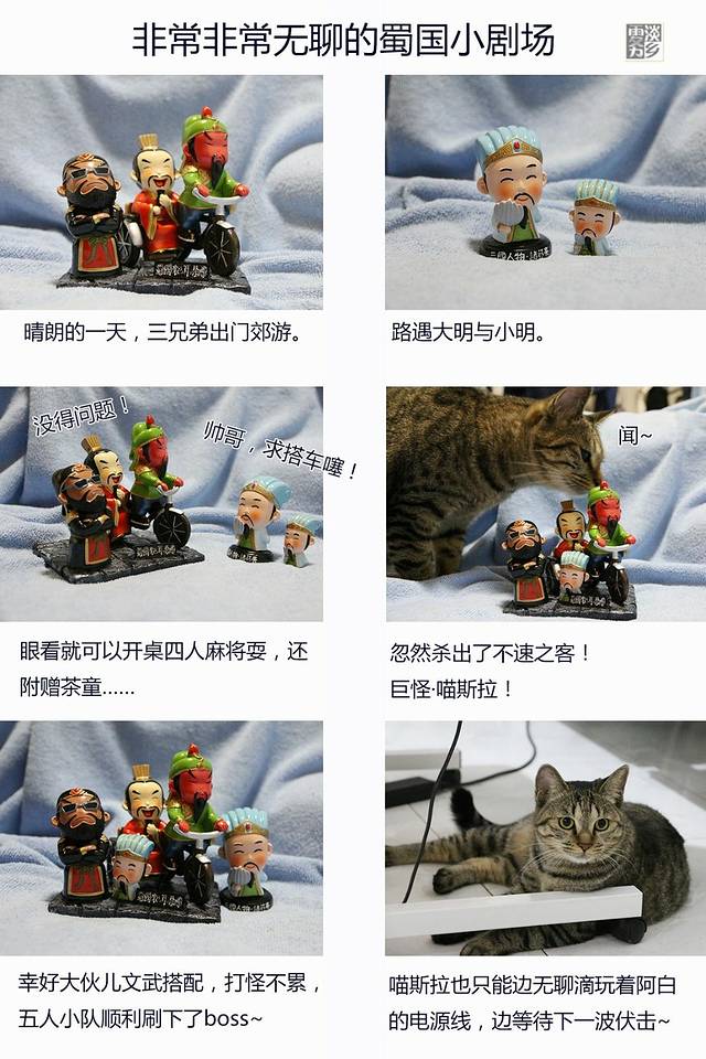 回家后用买来的泥塑编了无聊小剧场,阿白的爱猫“云流”倾情客串。