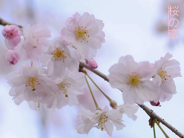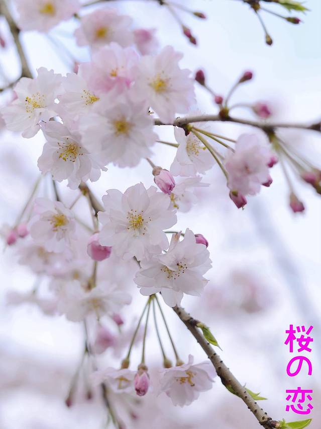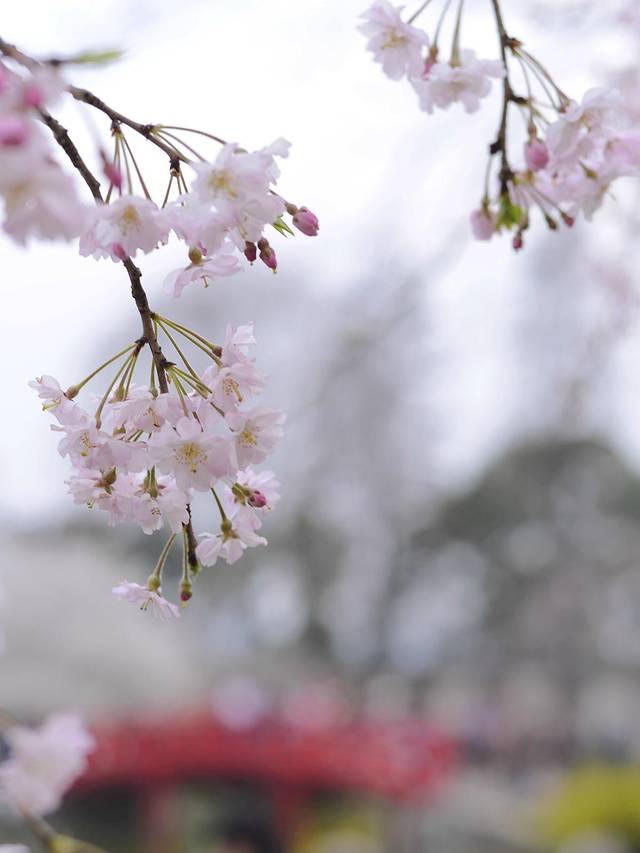 不同于以上图片中的东京樱,垂枝樱的花瓣几近透明,很像我们小时候用来折纸花的玻璃纸,少了几分少女的娇羞,多了几分冰清玉洁的矜持。