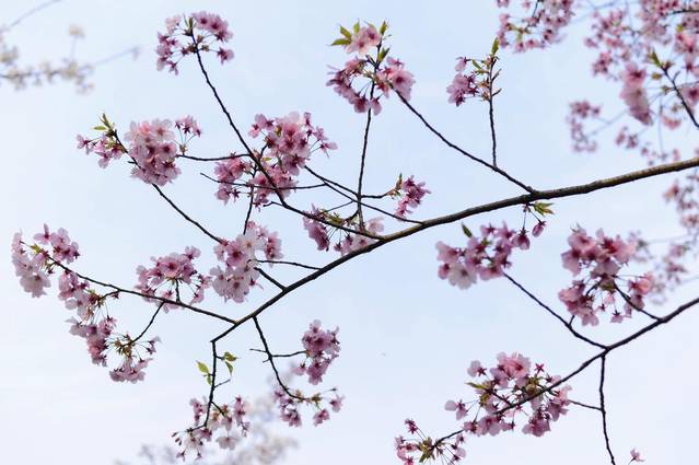 2.为避免照片中出现人比花多的场景,可将镜头对准天空,多拍低角度的照片;樱花虽美,不可一味只拍特写,表现整体环境也很重要!