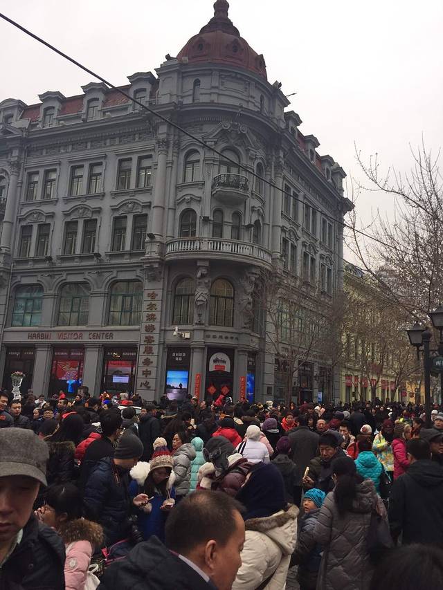 我把三张不同时间拍摄的中央大街景象放在一起,看起来甚是有趣。刚来的时候,我还在感叹,这街上好舒服呀,人不多,一路都是冰灯,随便拍随便玩。从初一上午开始,我就不敢这么想了,游客数量激增,一路人头涌涌,有种被推着走的感觉。
