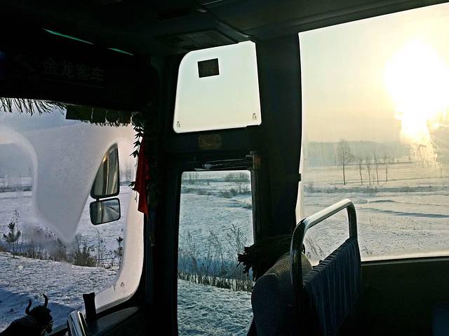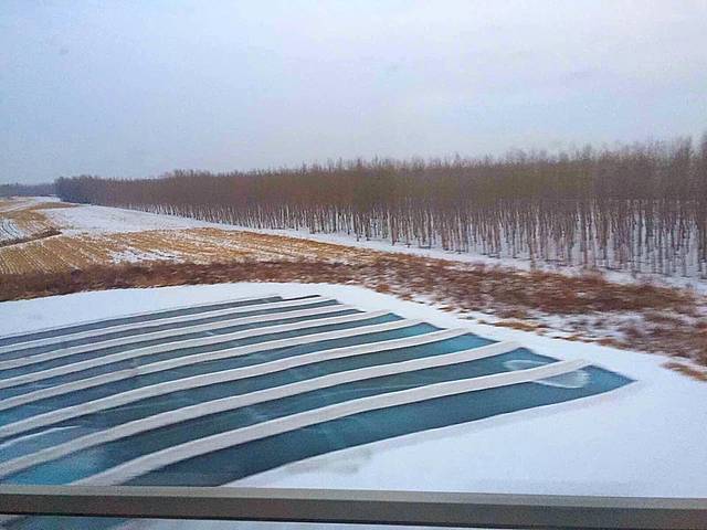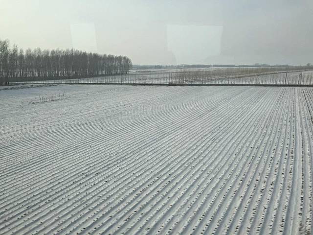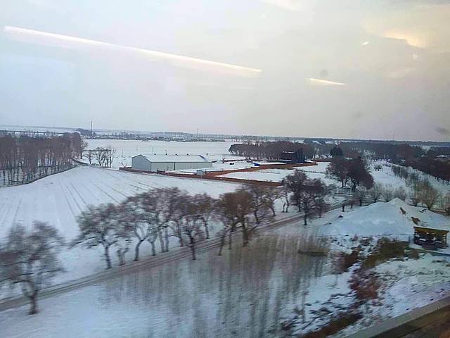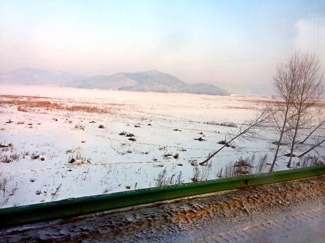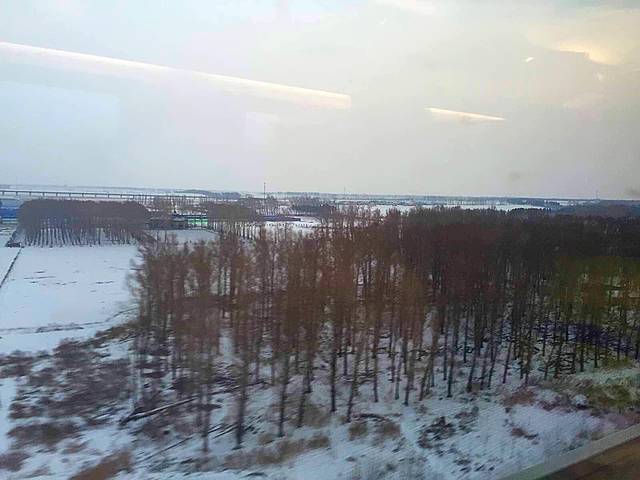 火车上,一路风景已不是一片白,融雪让植被显出了原有的颜色,层次分明挺好看的。