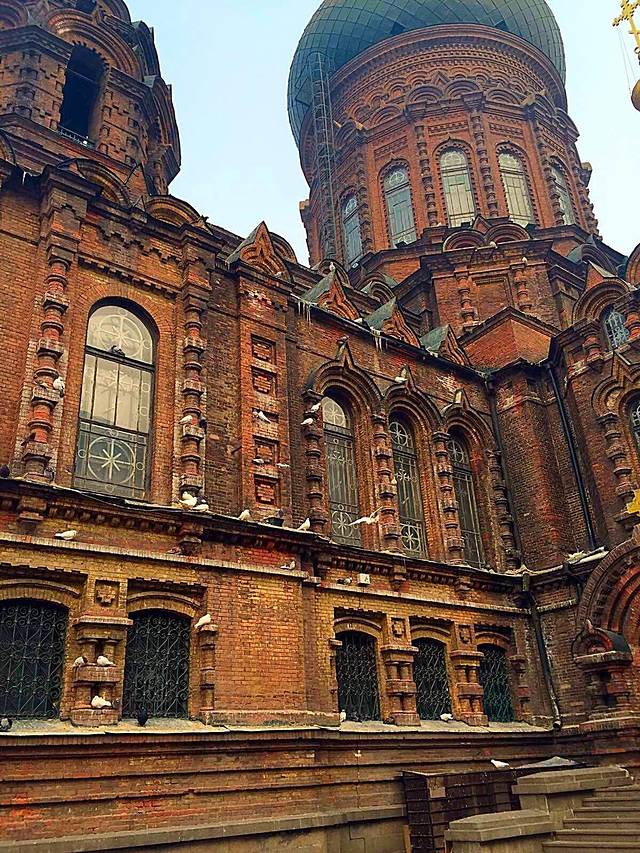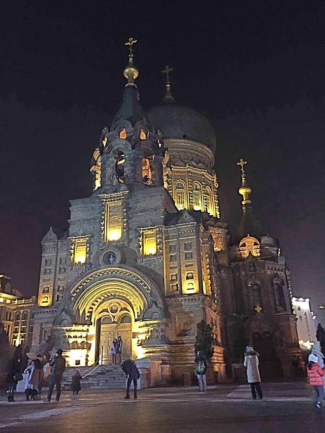 从中央大街步行到圣索菲亚大教堂大约10分钟,当地大姐说晚上好看白天没啥看头,我倒是觉得更喜欢她白天的模样。别具一格的拜占庭式建筑,青色的穹顶和金色的顶尖搭配,十分醒目。教堂规模不大,90年代已改为艺术博物馆,不再有教堂的功能。