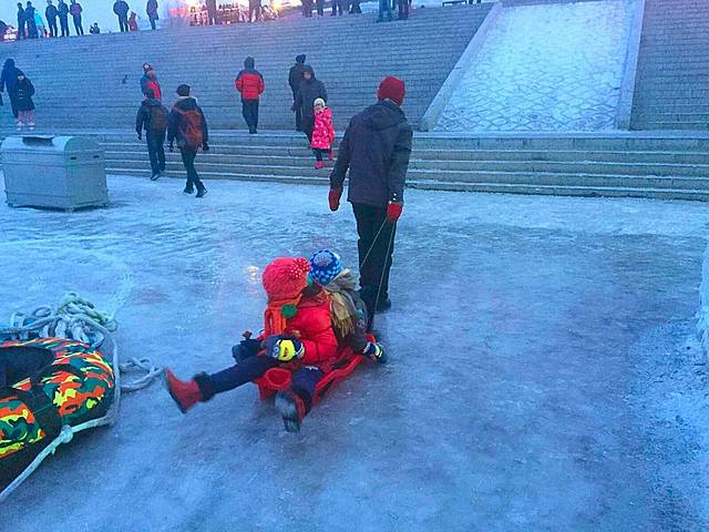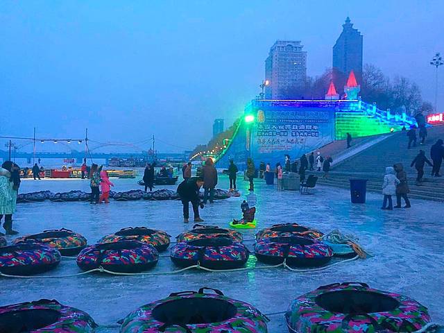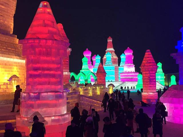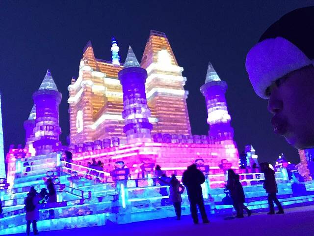 建议16:30之前到达,天刚开始黑,可以拍出不一样的冰灯效果。再晚人就开始多了,滑冰梯、看表演都要排比较长的队。