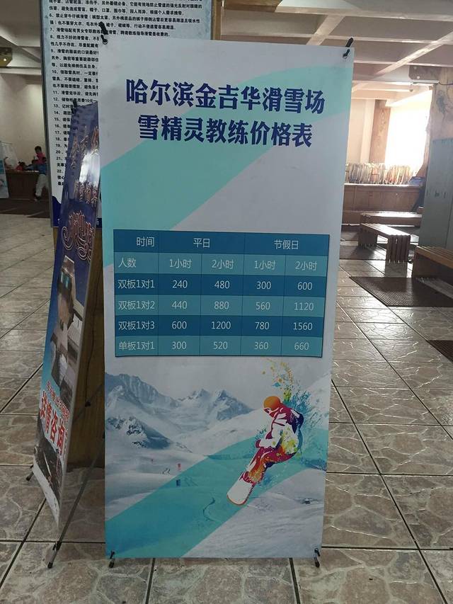 选择吉华的原因有离市区不远,1.5小时到达了;有高、中、初三级雪道,有一定规模;费用适中。携程订的吉华滑雪场一日游,有导游不包餐,178元\人。滑雪场内其他消费另算,教练300一小时 ,大柜子20一次,小柜子10一次,雪镜50一次,雪帽50一次,雪服60一次,升级板60一人。