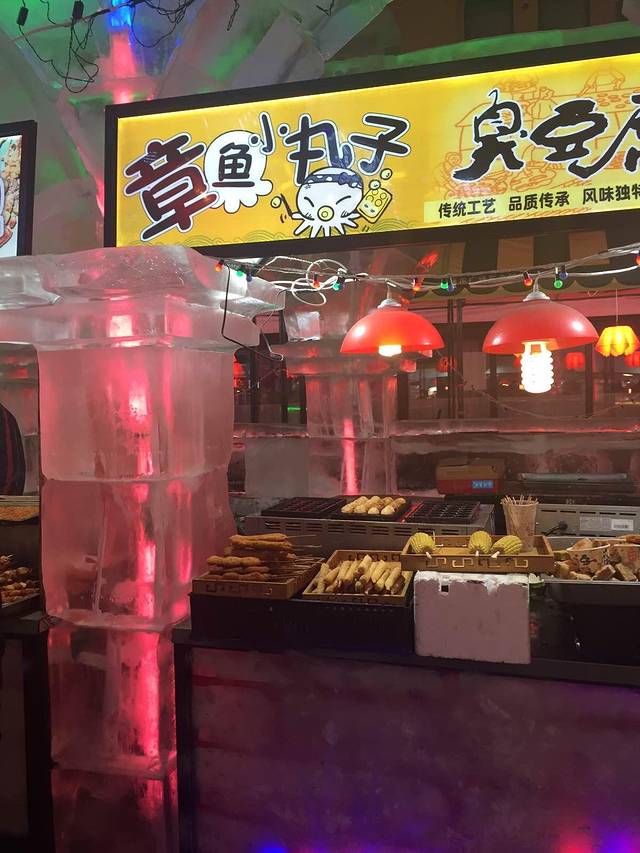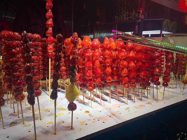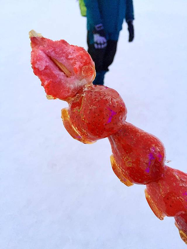 在零下十来度的冰雪大世界吃一直吹着的冰糖水果,心里全硬了,比较难咬,也失去了水果的多汁和鲜美,还是现烤的大串好吃。