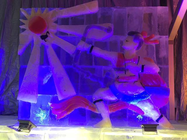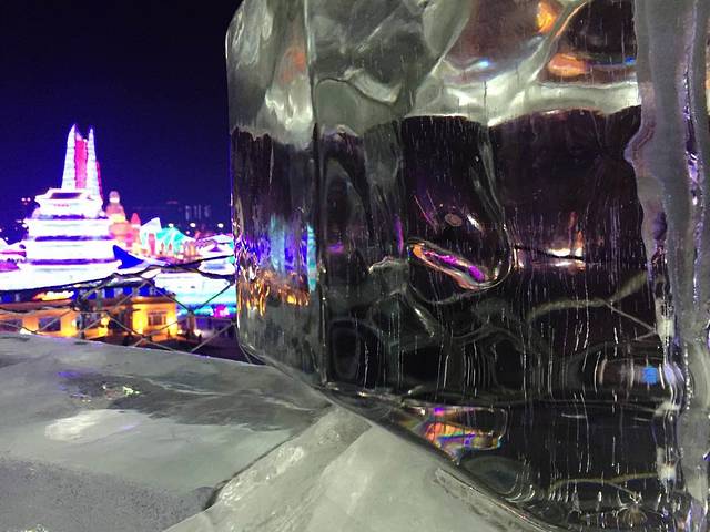 走的这天气温达到4摄氏度,冰雕化了,很多地方拉起了警示线,因为冰可能会断裂滑下砸伤人,路面湿滑。