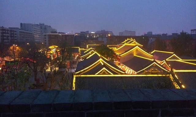 站在西安城墙上面看外面的古街,我也分不清这是内城还是外城。