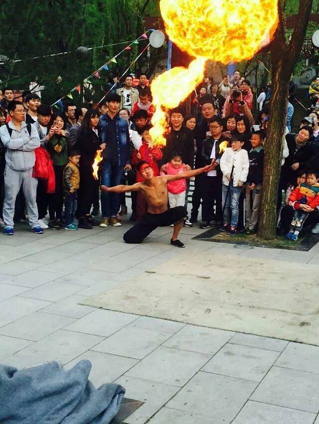 大唐芙蓉园里面表演,电视剧里面所谓的卖艺的,看完表演看着给钱,上刀山,走玻璃啥都有,不过这几个孩子都还小呢。