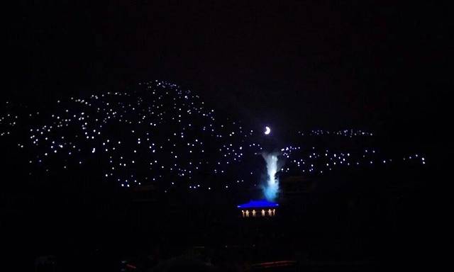 这是骊山,亮光的地方是骊山的石头,一块一块的弄上去的。中间那是银河,是个山谷。挺神奇的。