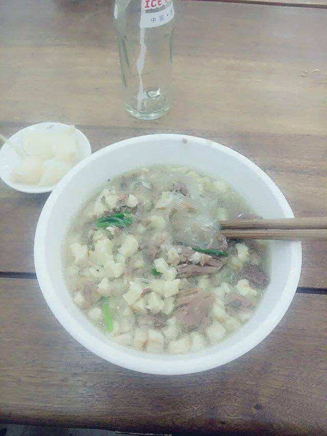 我们去的时候已经晚了,永兴坊已经关门了,旁边有家狗子包子,特别好吃,这是鸡蛋醪糟,但是没有兰州的好吃。