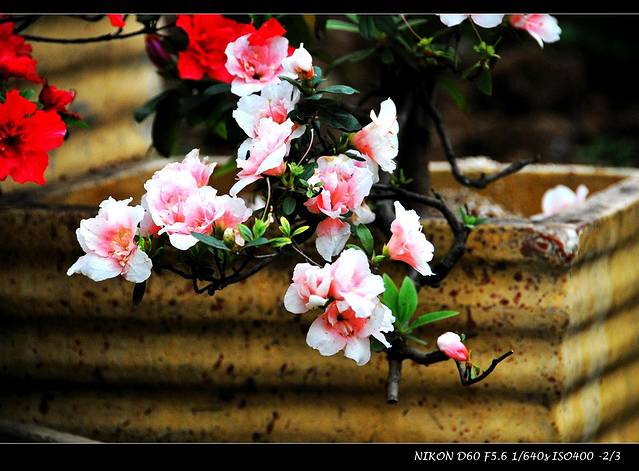 最后一张图片用了一种花色淡雅的杜鹃,在一个古旧的、外表斑驳的花盆里静静绽放,一如青山公园,隐身于这喧嚣闹市,独享属于自己的芳华绝代。