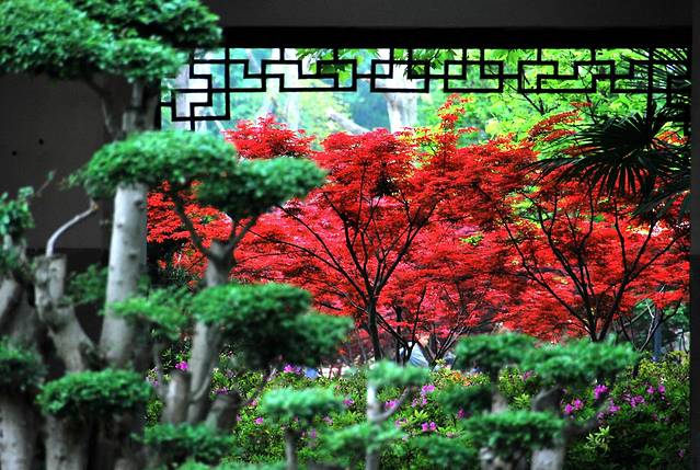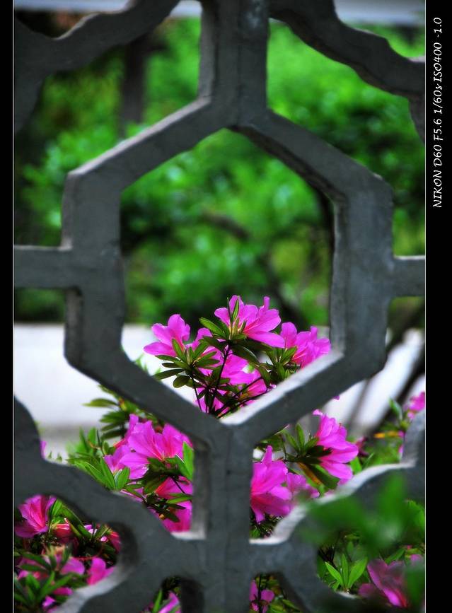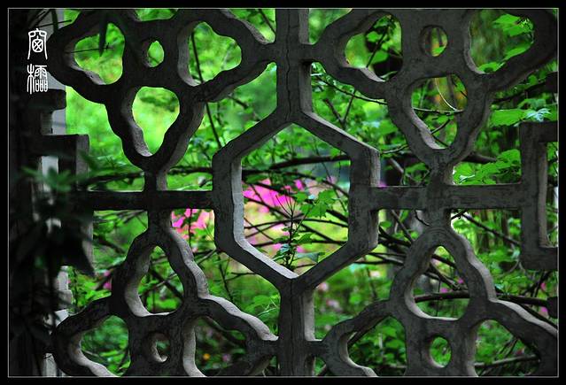 公园是一座典型的中式园林,从窗棂里望出去,无论看到的是沁人心脾的绿色,还是静静绽放地花朵,都有种莫名的新发现般的惊喜,这也许就是窗棂透景的妙处所在了。